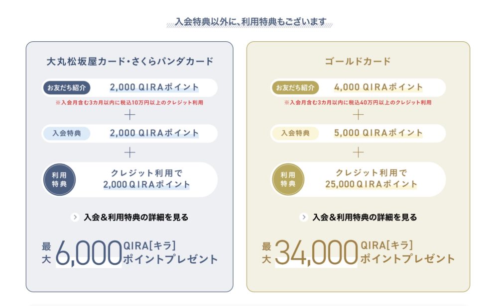 「大丸松坂屋カードなら2000ポイント」「大丸松坂屋ゴールドカードなら4000ポイント」が新規入会キャンペーンと併用してもらうことができます。