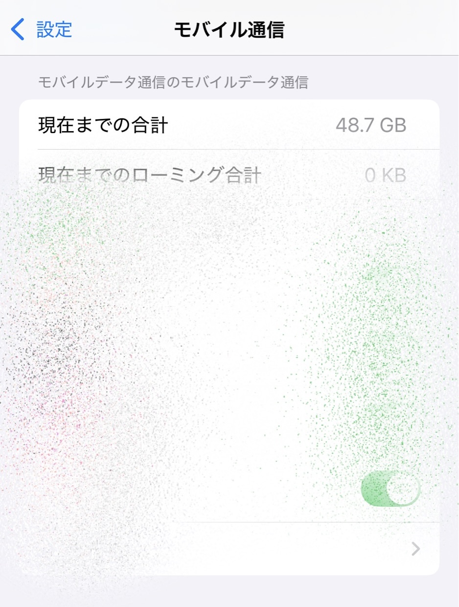 そして、iPhoneの「モバイルデータ通信」を確認してみると、「48.7GB」まで使用できていました。