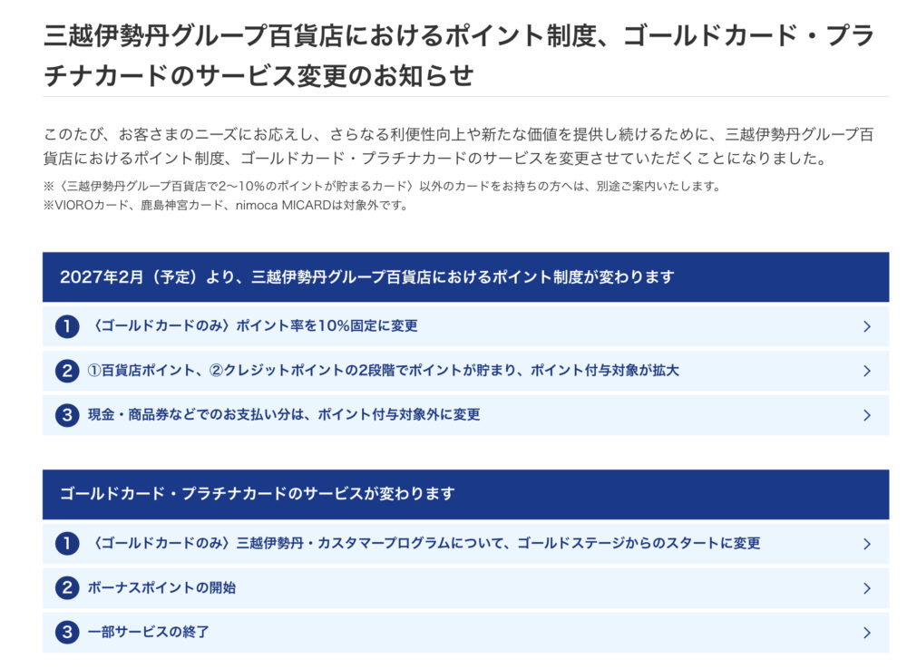 こちら→「三越伊勢丹グループ百貨店におけるポイント制度、ゴールドカード・プラチナカードのサービス変更のお知らせ」